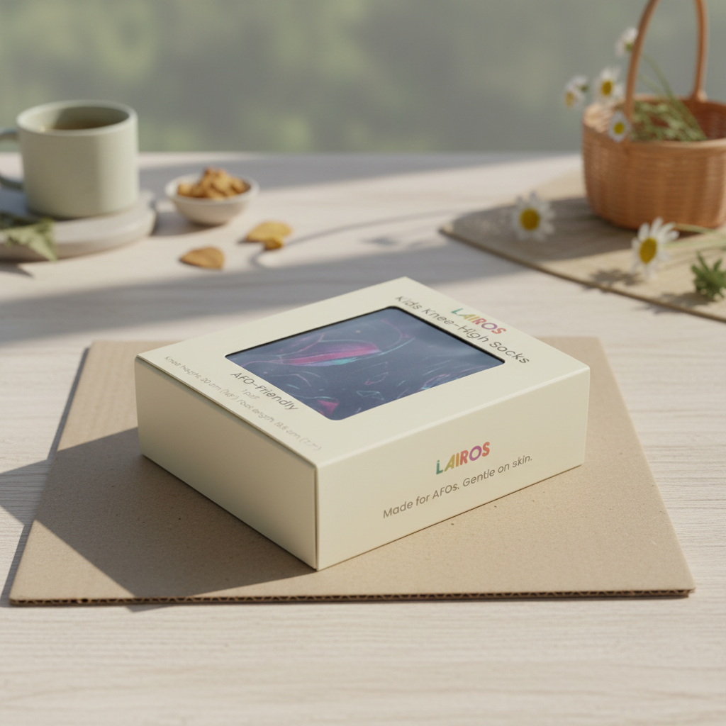 Lairos socks were specifically designed for children who wear AFO braces, with a focus on a smooth interior, minimal seams, and soft, breathable materials to help reduce friction inside the brace.