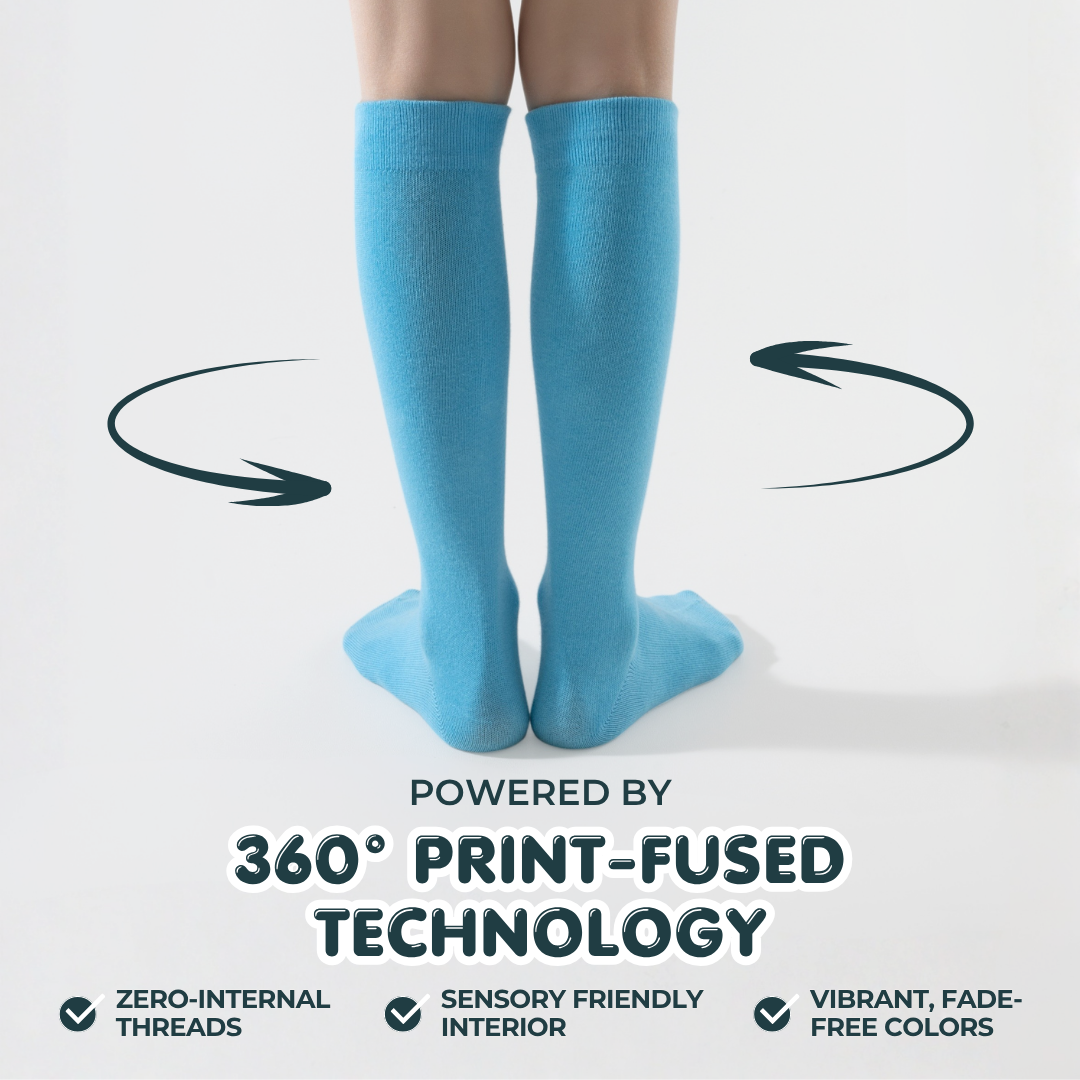 Using advanced 360° Sublimation Printing, we fuse ink directly into the fibers. Unlike Jacquard socks, our interior is completely smooth and white, eliminating the messy "float threads" that tickle and irritate sensitive skin.