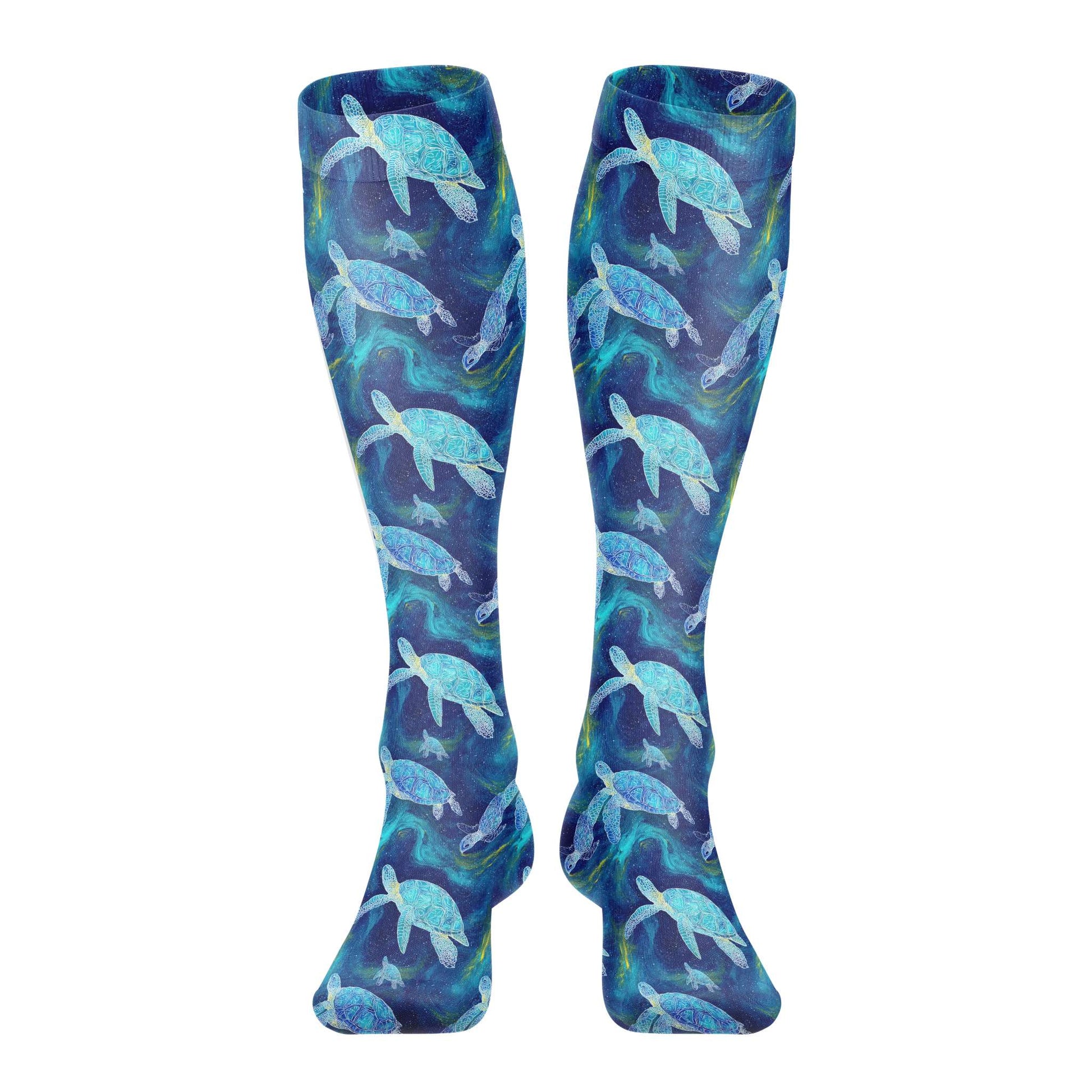 A gentle elastic cuff helps the socks stay in place under the brace without squeezing the leg, while the flexible knit fits comfortably under both full-length and ankle-height orthotic braces.