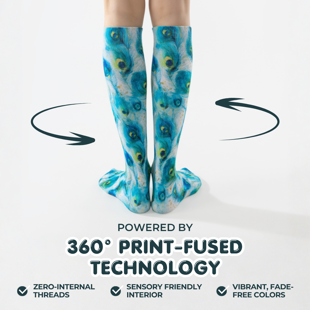 Using advanced 360° Sublimation Printing, we fuse ink directly into the fibers. Unlike Jacquard socks, our interior is completely smooth and white, eliminating the messy "float threads" that tickle and irritate sensitive skin.