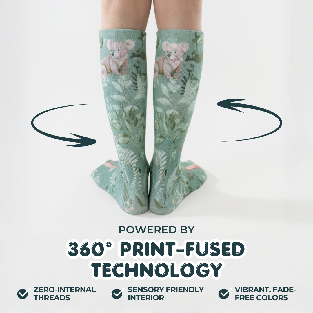 Using advanced 360° Sublimation Printing, we fuse ink directly into the fibers. Unlike Jacquard socks, our interior is completely smooth and white, eliminating the messy "float threads" that tickle and irritate sensitive skin.
