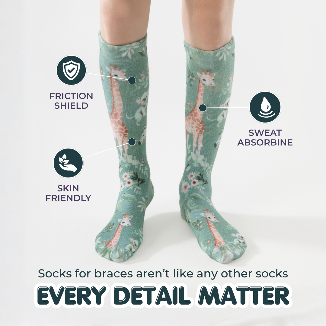 Socks designed specifically for AFO braces are best for kids. They reduce friction inside the brace, stay securely in place throughout the day, and help prevent skin irritation. Regular socks are not built for brace use and often cause discomfort or pressure points.